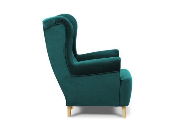 Subtelne przeszycia, dopracowane detale oraz delikatne, zwężane nóżki nadają meblowi lekkości i elegancji. Fotel Erik świetnie sprawdzi się zarówno jako samodzielny element wystroju, jak i część zestawu z sofą lub pufem z tej samej kolekcji.