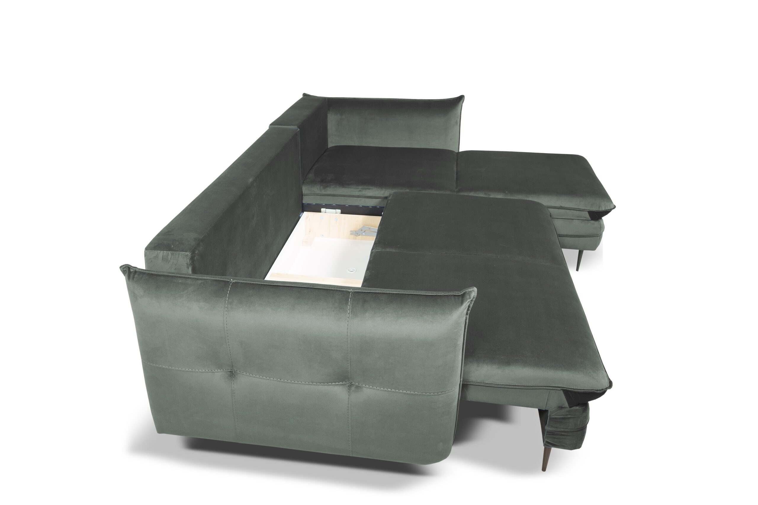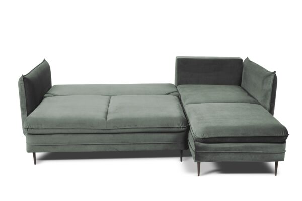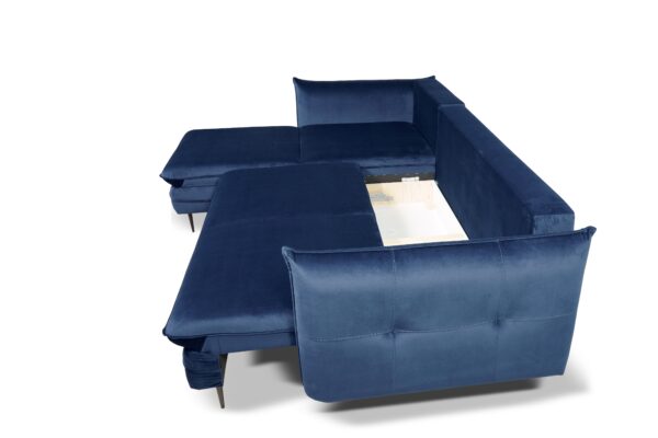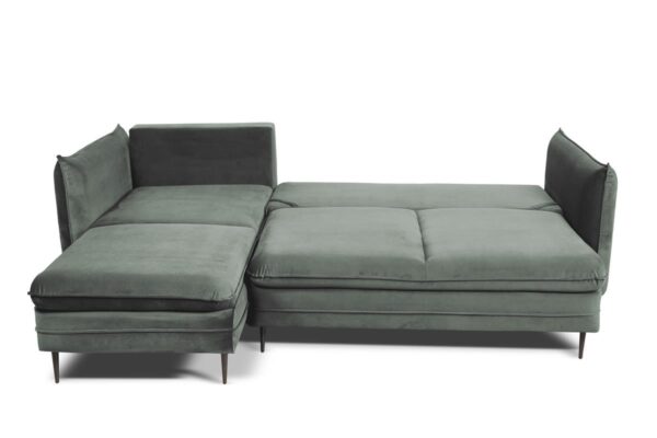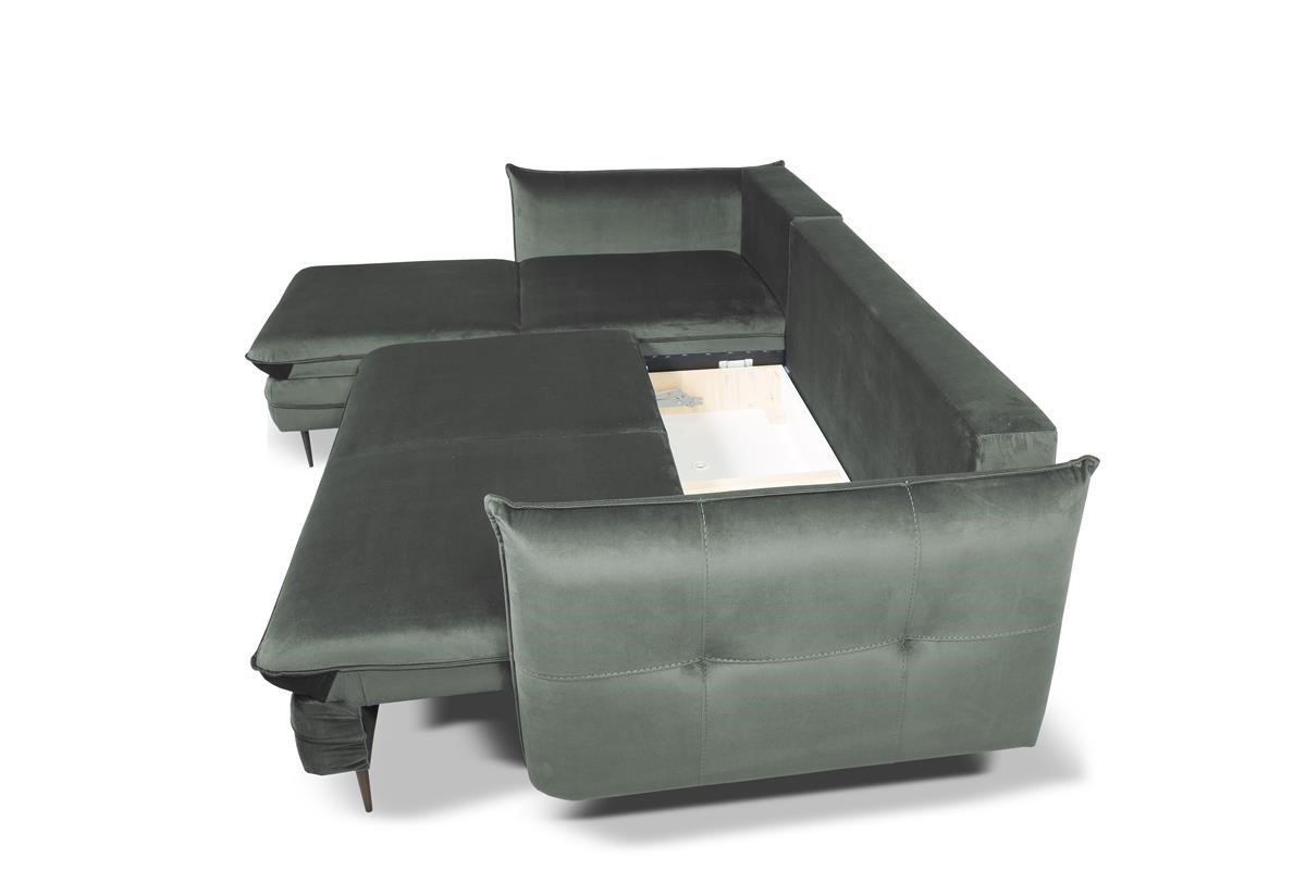 Narożnik Homely posiada funkcję spania typu DL, umożliwiającą szybkie i łatwe rozłożenie. Po rozłożeniu uzyskujemy dużą powierzchnię spania o wymiarach 210 × 133 cm, która zapewnia spokojny sen dla dwóch osób. Automat wspomagający rozkładanie sprawia, że przekształcenie narożnika w łóżko jest wyjątkowo proste i bezwysiłkowe.