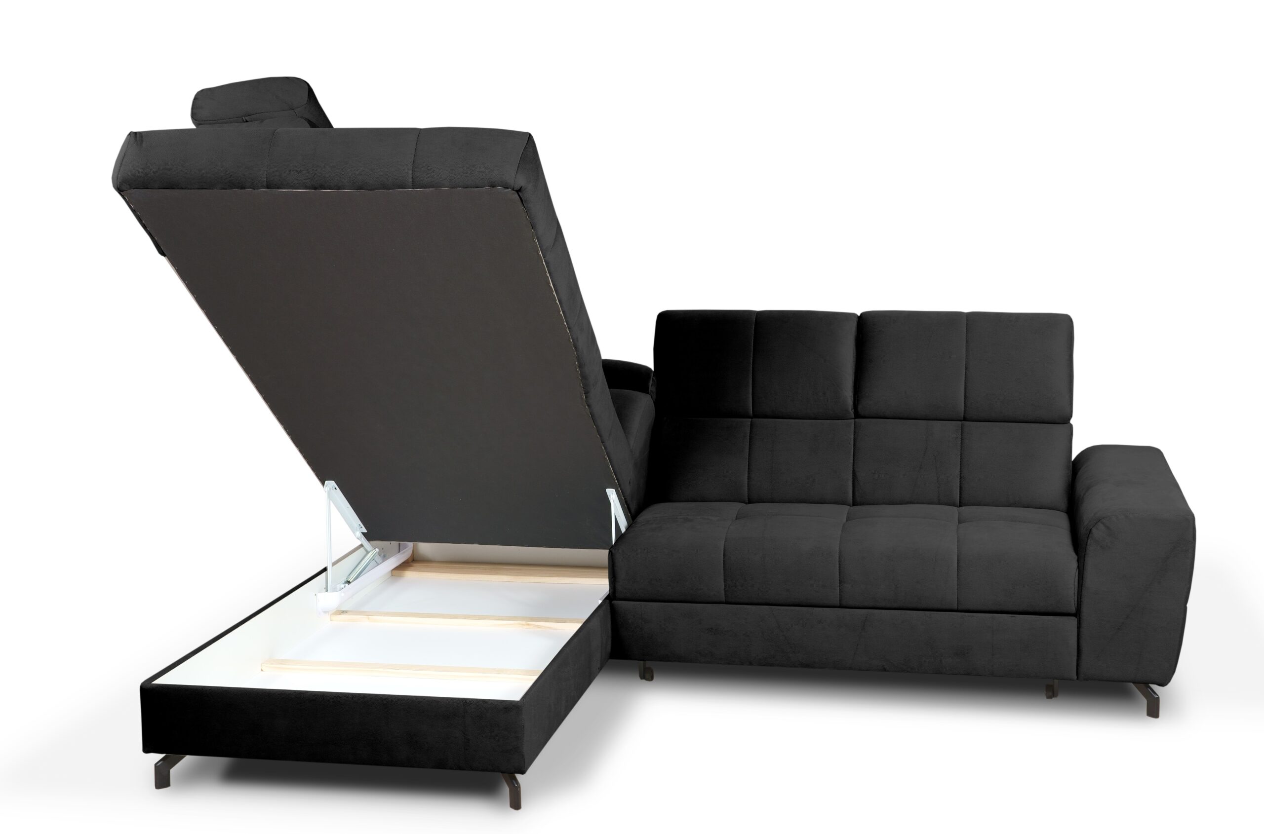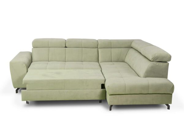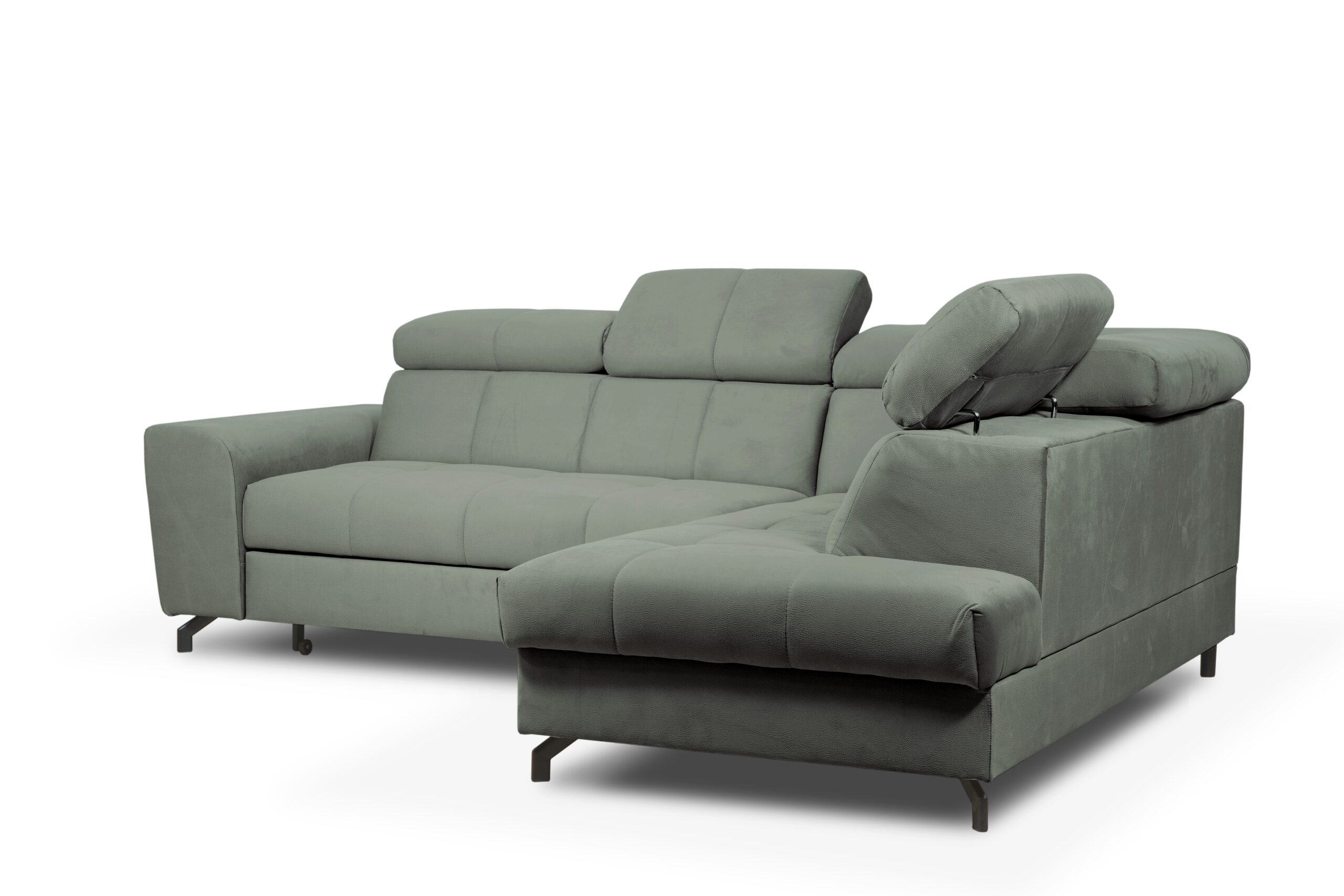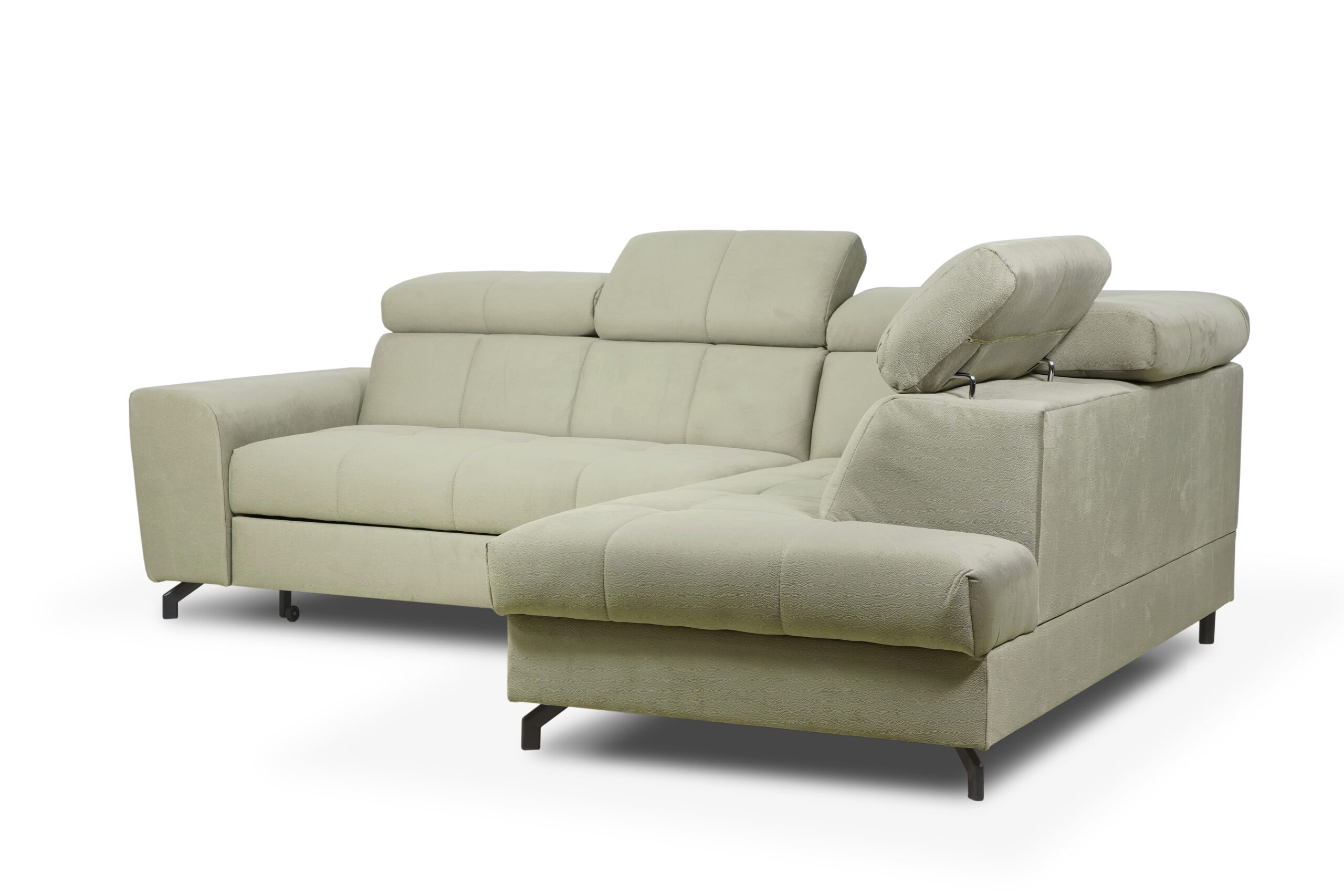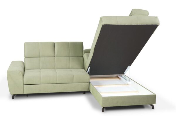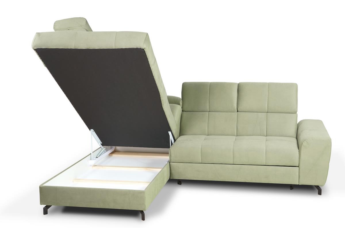 Dodatkowym atutem jest pojemnik na pościel w otomanie, który ułatwia przechowywanie kołder, poduszek i koców, pomagając utrzymać porządek w salonie. Model LeMans dostępny jest w wersji lewej i prawej, co pozwala dopasować go do układu pomieszczenia.