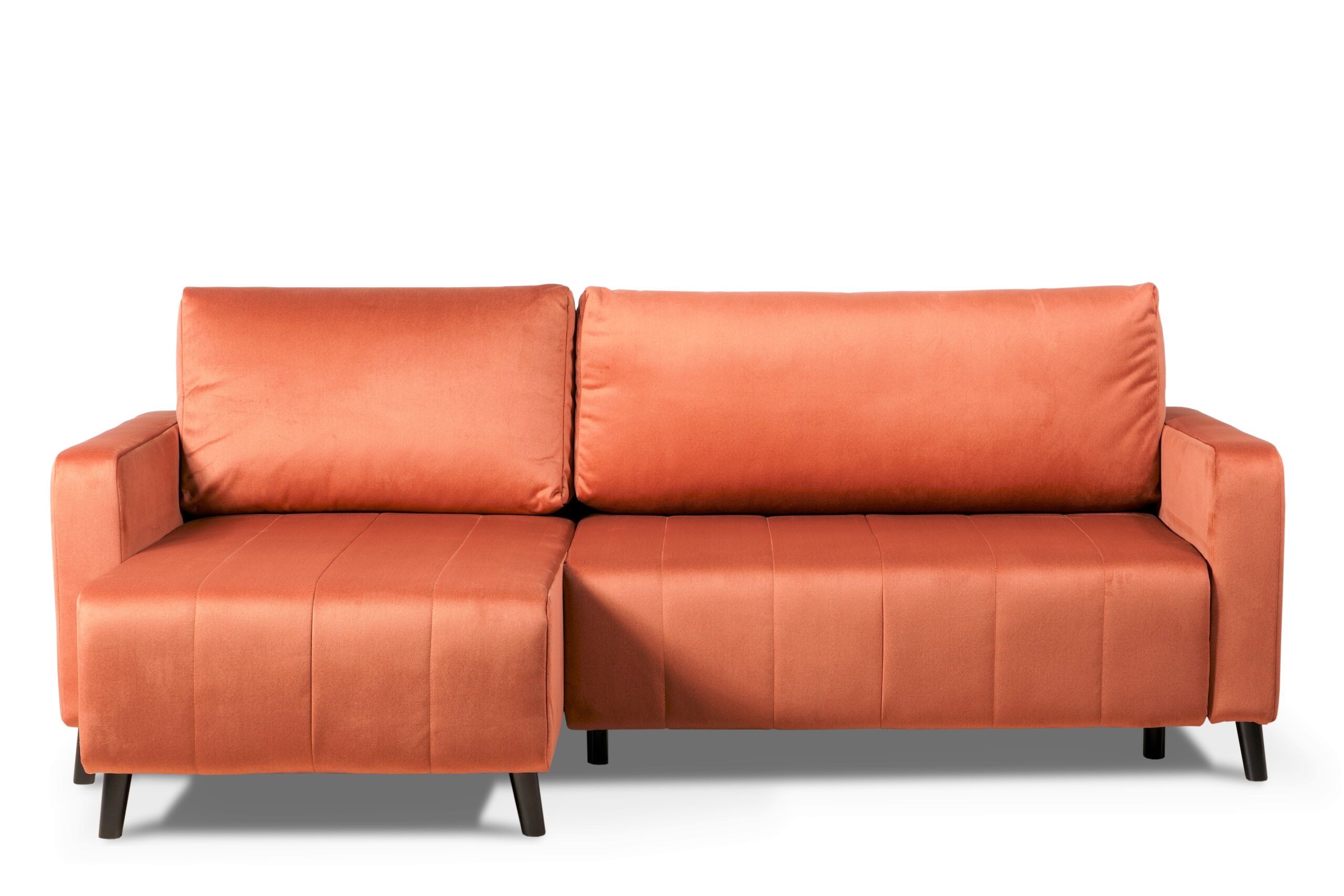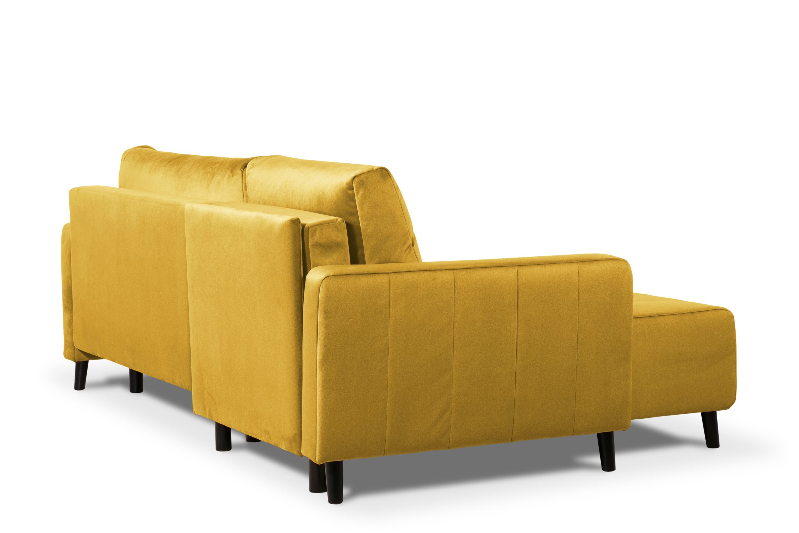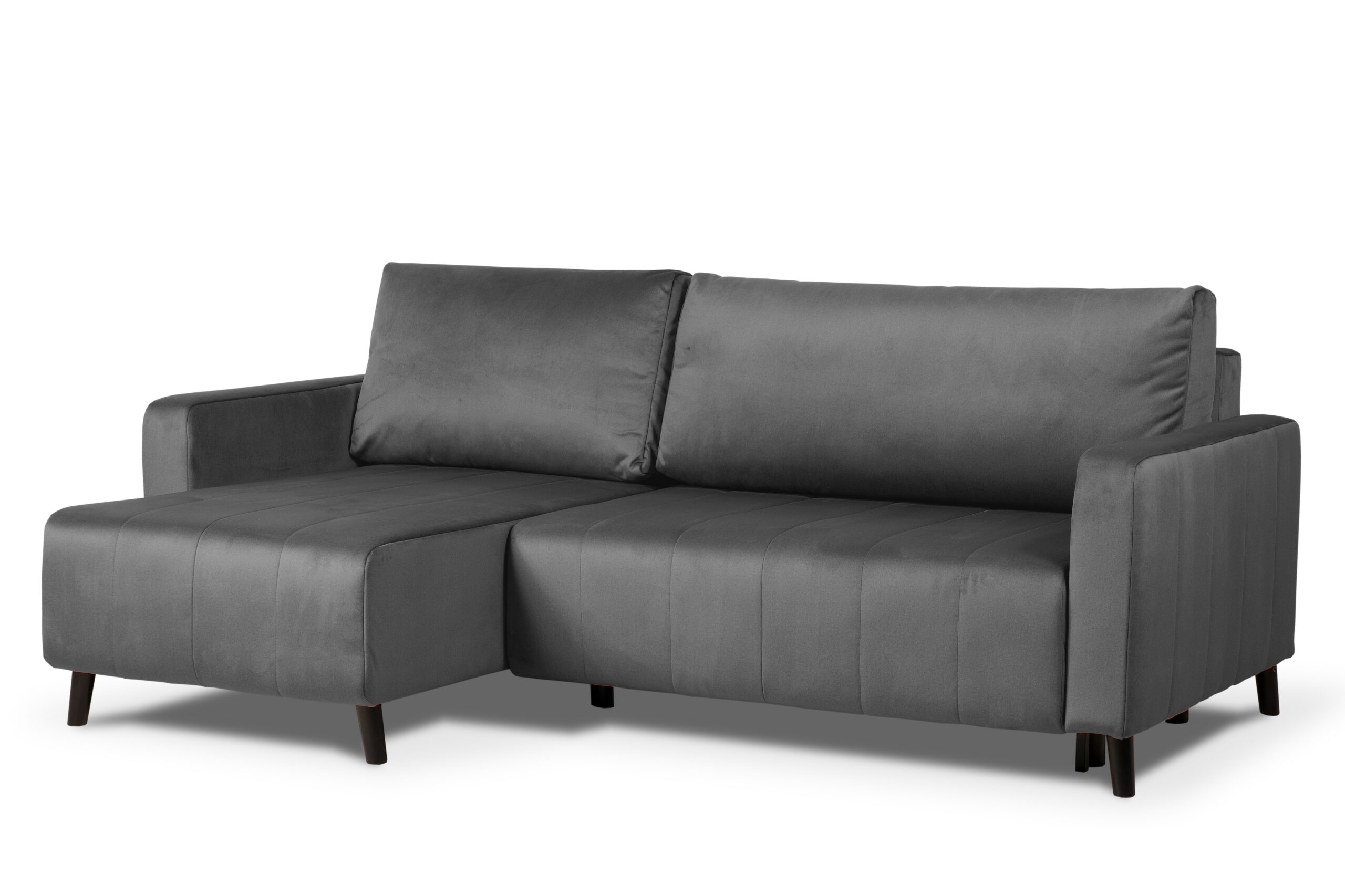Dodatkowym udogodnieniem jest pojemnik na pościel w kolorze białym, umieszczony w otomanie – idealny do przechowywania koców, kołder i poduszek. Dzięki swojej konstrukcji narożnik jest uniwersalny, co pozwala ustawić go zarówno w wersji lewej, jak i prawej, w zależności od potrzeb aranżacyjnych.