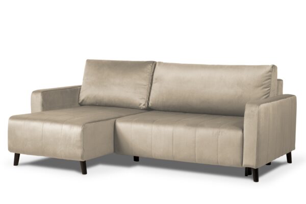 Narożnik Polo to kompaktowy, a jednocześnie niezwykle funkcjonalny mebel, idealny do mniejszych przestrzeni. Pomimo niewielkich wymiarów zewnętrznych oferuje bardzo dużą powierzchnię spania, co czyni go doskonałym wyborem do salonów, kawalerek czy mieszkań o ograniczonym metrażu.