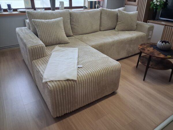 Narożnik Roomy to propozycja dla osób, które cenią sobie nowoczesny design, komfort oraz praktyczne rozwiązania. Dzięki starannemu wykonaniu i wysokiej jakości materiałom świetnie sprawdzi się zarówno w salonie, jak i w pokoju dziennym, tworząc przytulną i elegancką przestrzeń do relaksu.