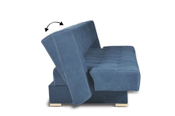 Dzięki dwustopniowemu położeniu oparcia możesz dopasować ustawienie mebla do własnych potrzeb – idealnie sprawdzi się zarówno podczas odpoczynku w pozycji siedzącej, jak i w trybie spania. Mechanizm wspomagający rozkładanie sprawia, że zmiana funkcji z sofy na łóżko jest szybka, prosta i bez wysiłku.