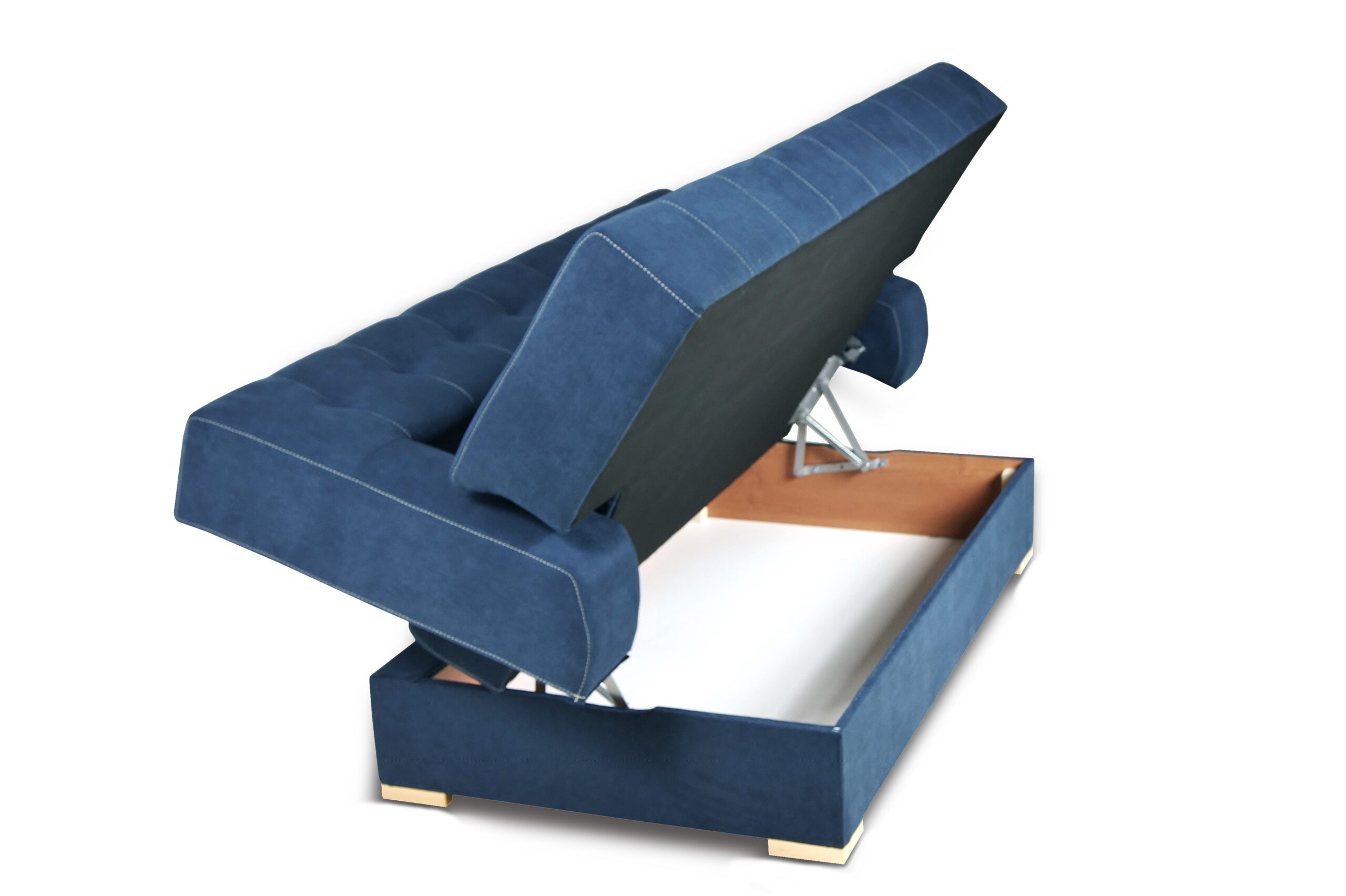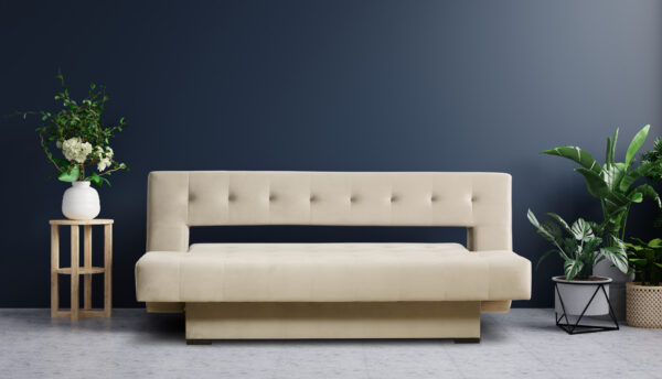 Powierzchnia spania o wymiarach 200 × 122 cm oferuje wystarczająco dużo miejsca, aby zapewnić komfortowy sen dla jednej lub dwóch osób. Dodatkowo wersalka posiada duży, łatwo dostępny pojemnik na pościel, który pozwala na praktyczne przechowywanie koców, poduszek i kołder.