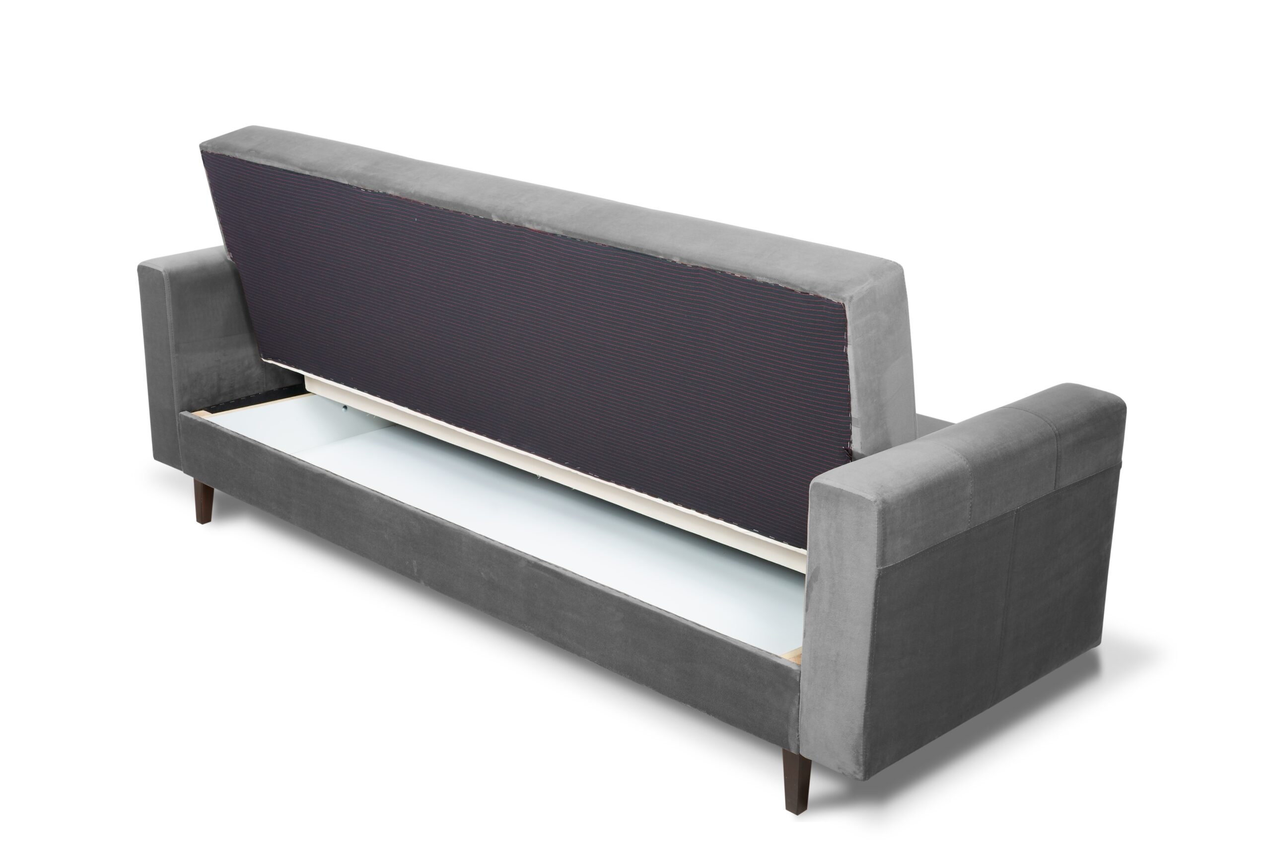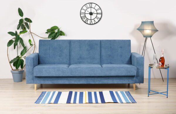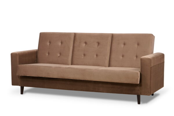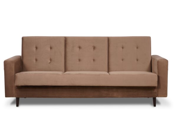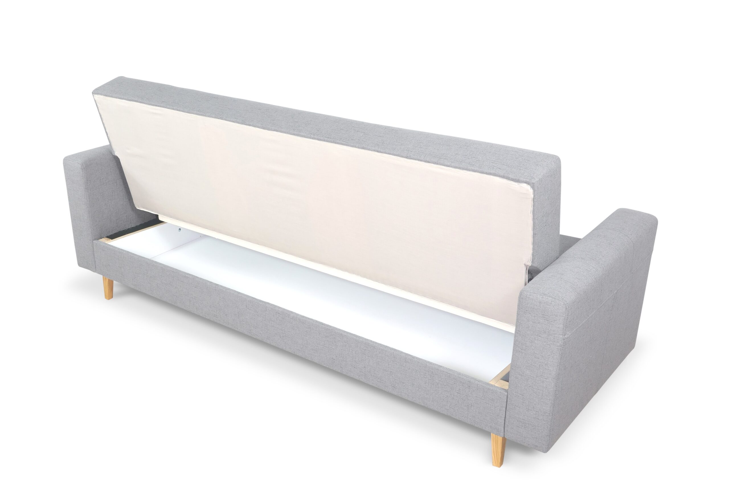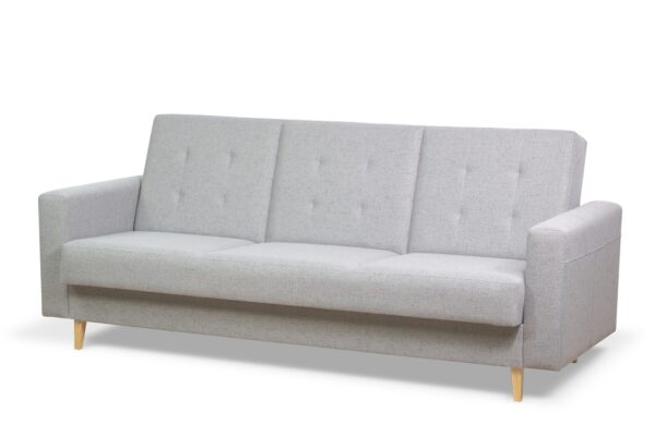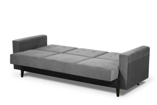 Model wyposażono w funkcję spania, umożliwiającą szybkie i wygodne rozłożenie mebla. Powierzchnia spania o wymiarach 190 × 115 cm sprawia, że wersalka doskonale sprawdza się jako łóżko dla jednej lub dwóch osób. Dodatkowo posiada pojemny schowek na pościel w kolorze białym, który ułatwia przechowywanie koców, poduszek i kołder.