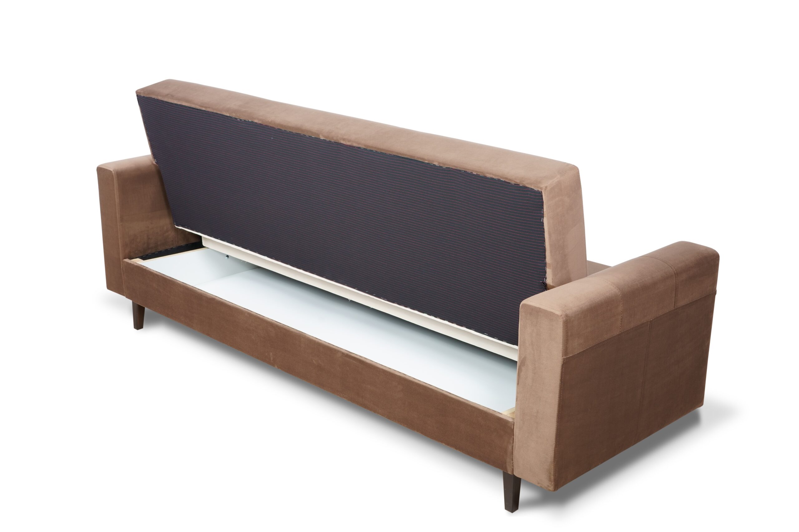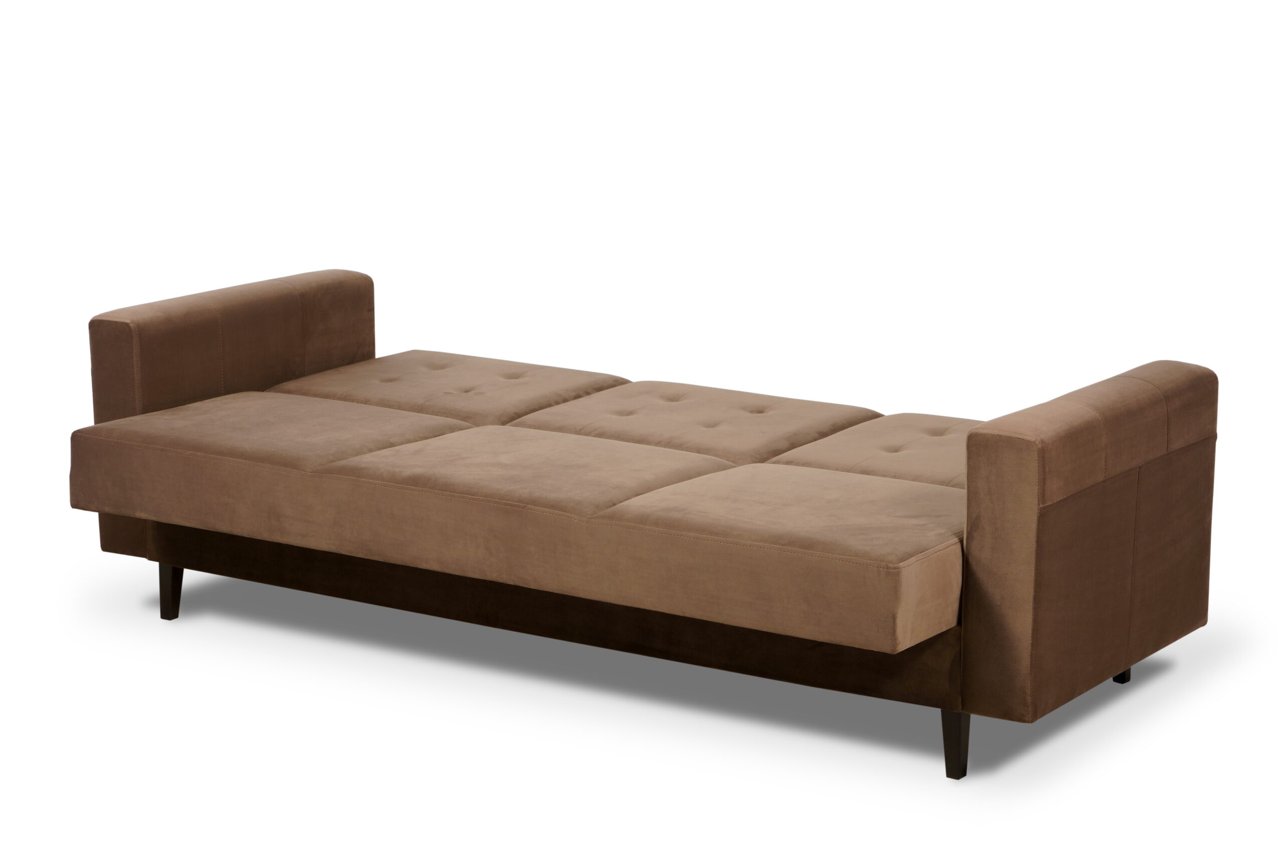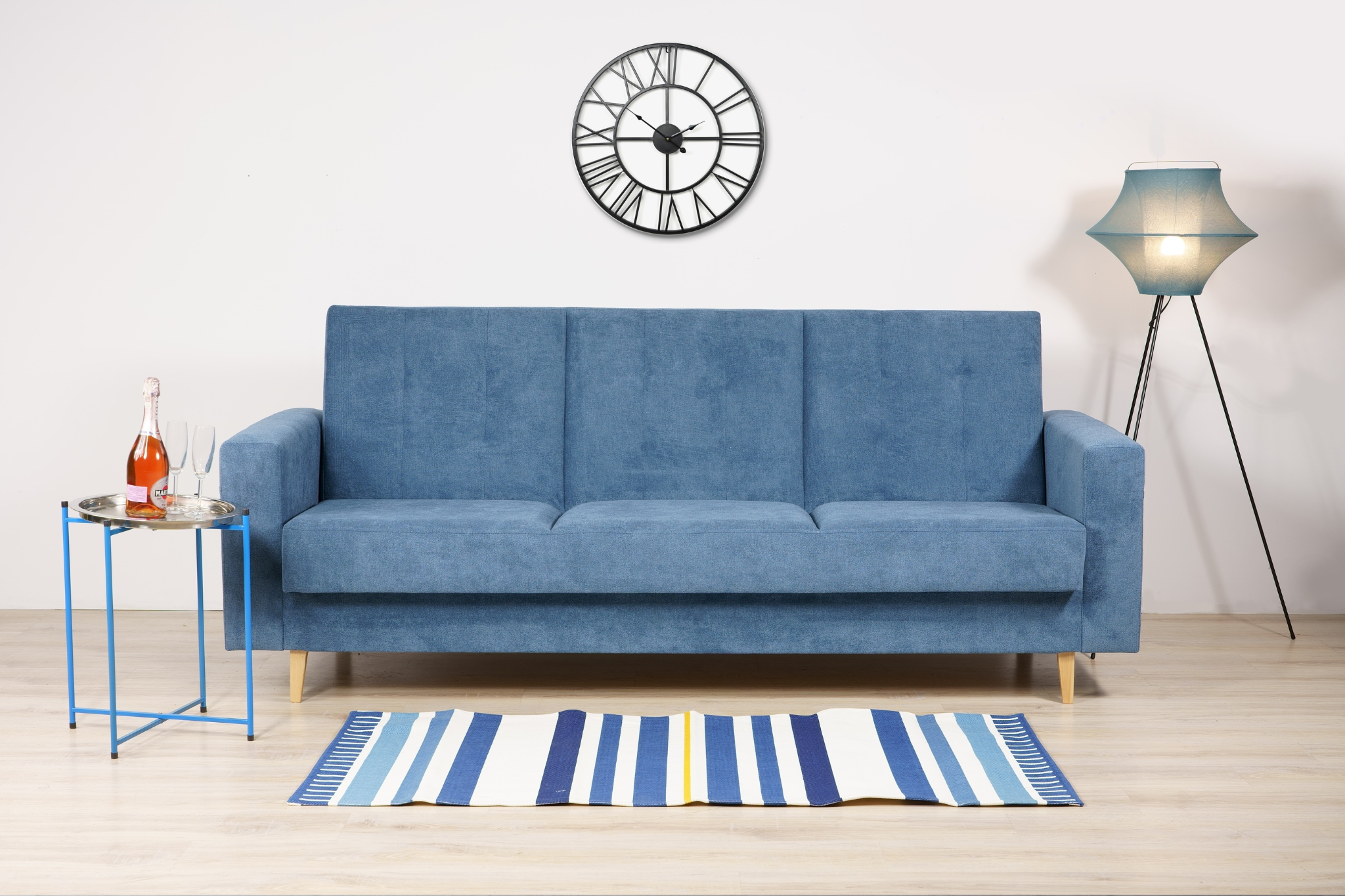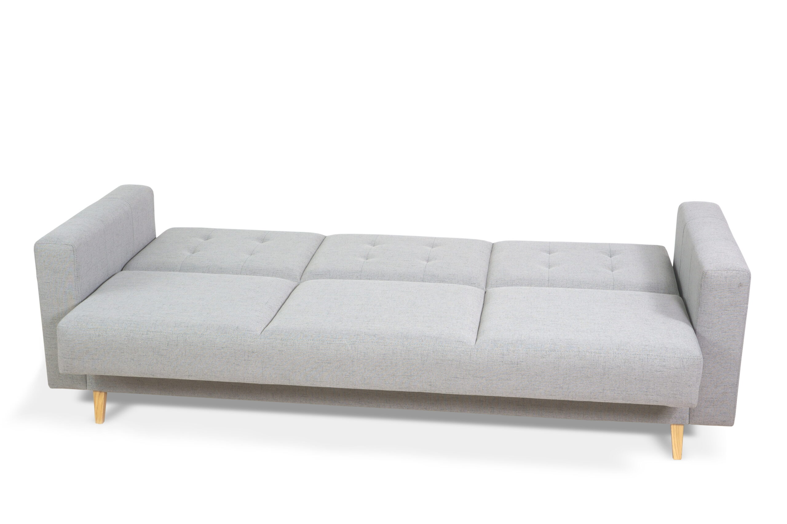 Model wyposażono w funkcję spania, umożliwiającą szybkie i wygodne rozłożenie mebla. Powierzchnia spania o wymiarach 190 × 115 cm sprawia, że wersalka doskonale sprawdza się jako łóżko dla jednej lub dwóch osób. Dodatkowo posiada pojemny schowek na pościel w kolorze białym, który ułatwia przechowywanie koców, poduszek i kołder.