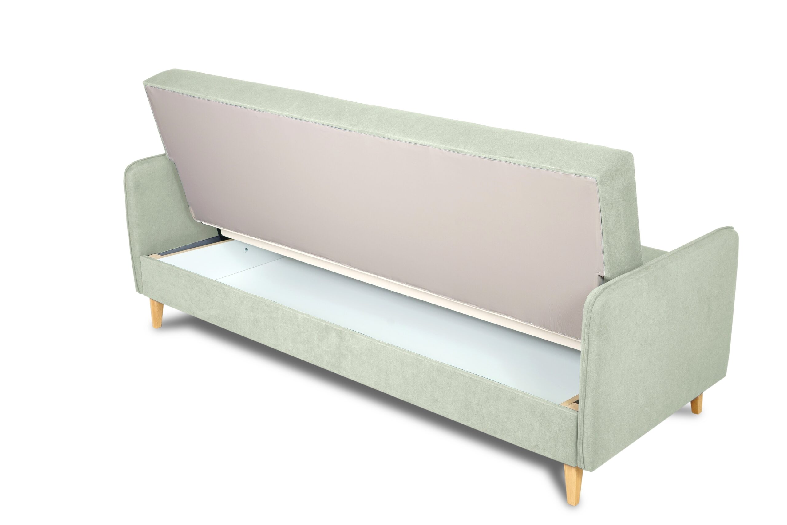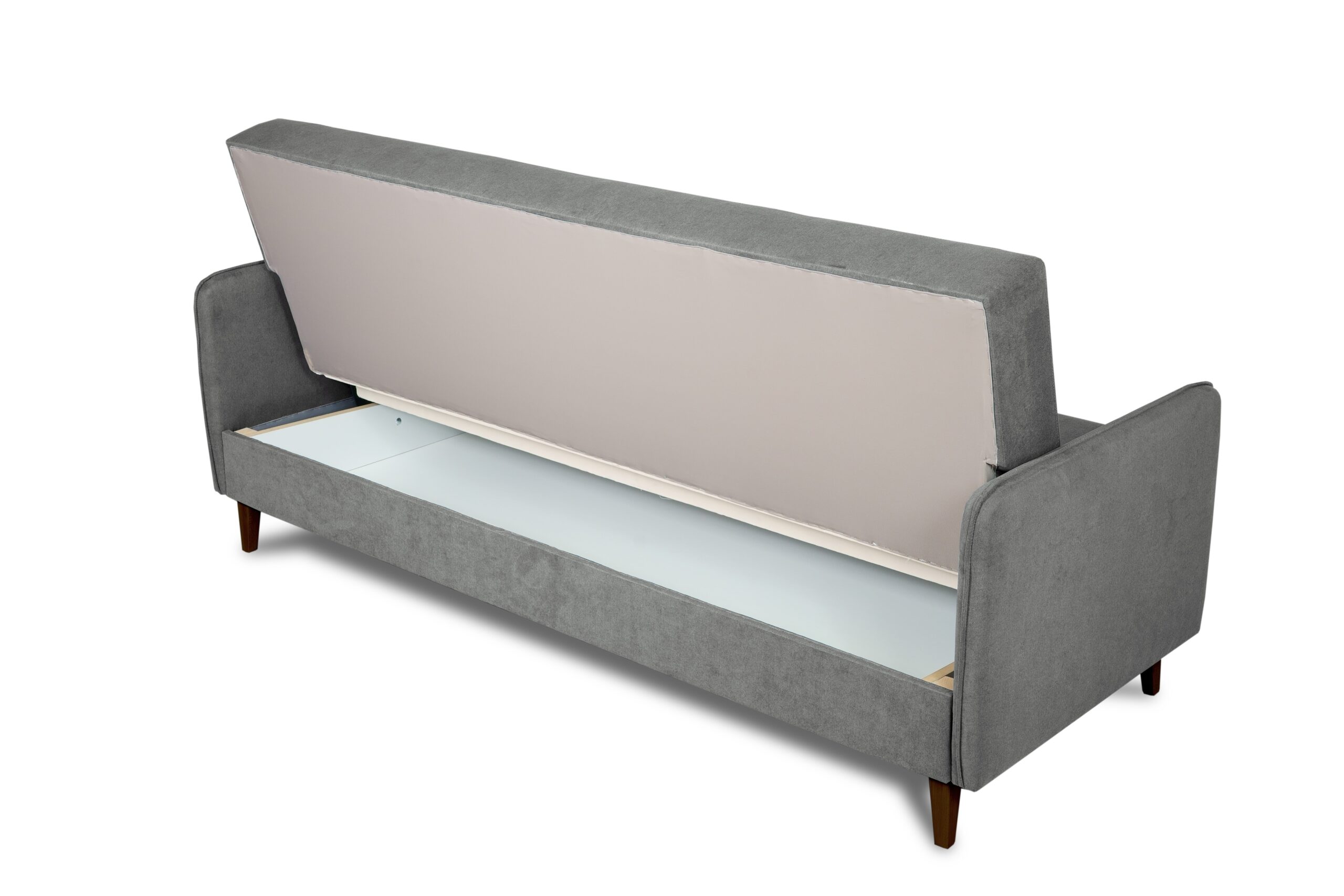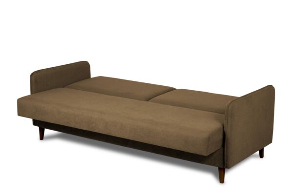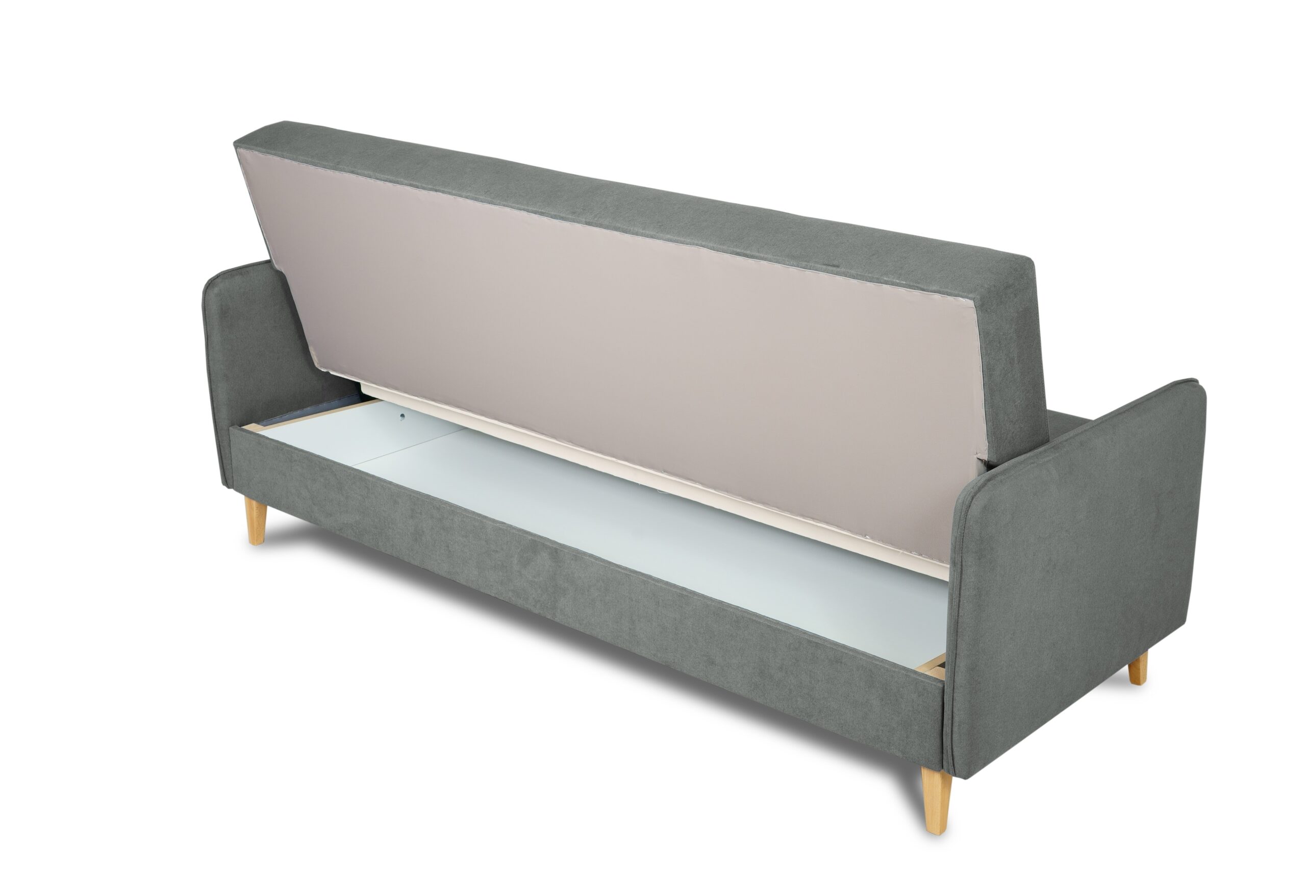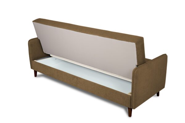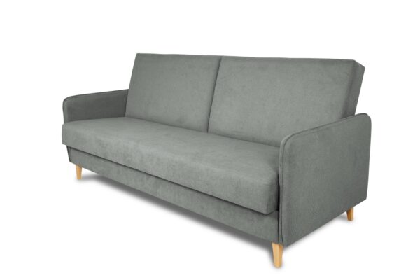 Wersalka Lupo wyposażona jest w funkcję spania – łatwy w obsłudze mechanizm pozwala w szybki sposób rozłożyć mebel, uzyskując komfortową powierzchnię do snu o wymiarach 190 × 115 cm. Pod siedziskiem znajduje się pojemny schowek na pościel w kolorze białym, który umożliwia wygodne przechowywanie koców, poduszek lub kołder.