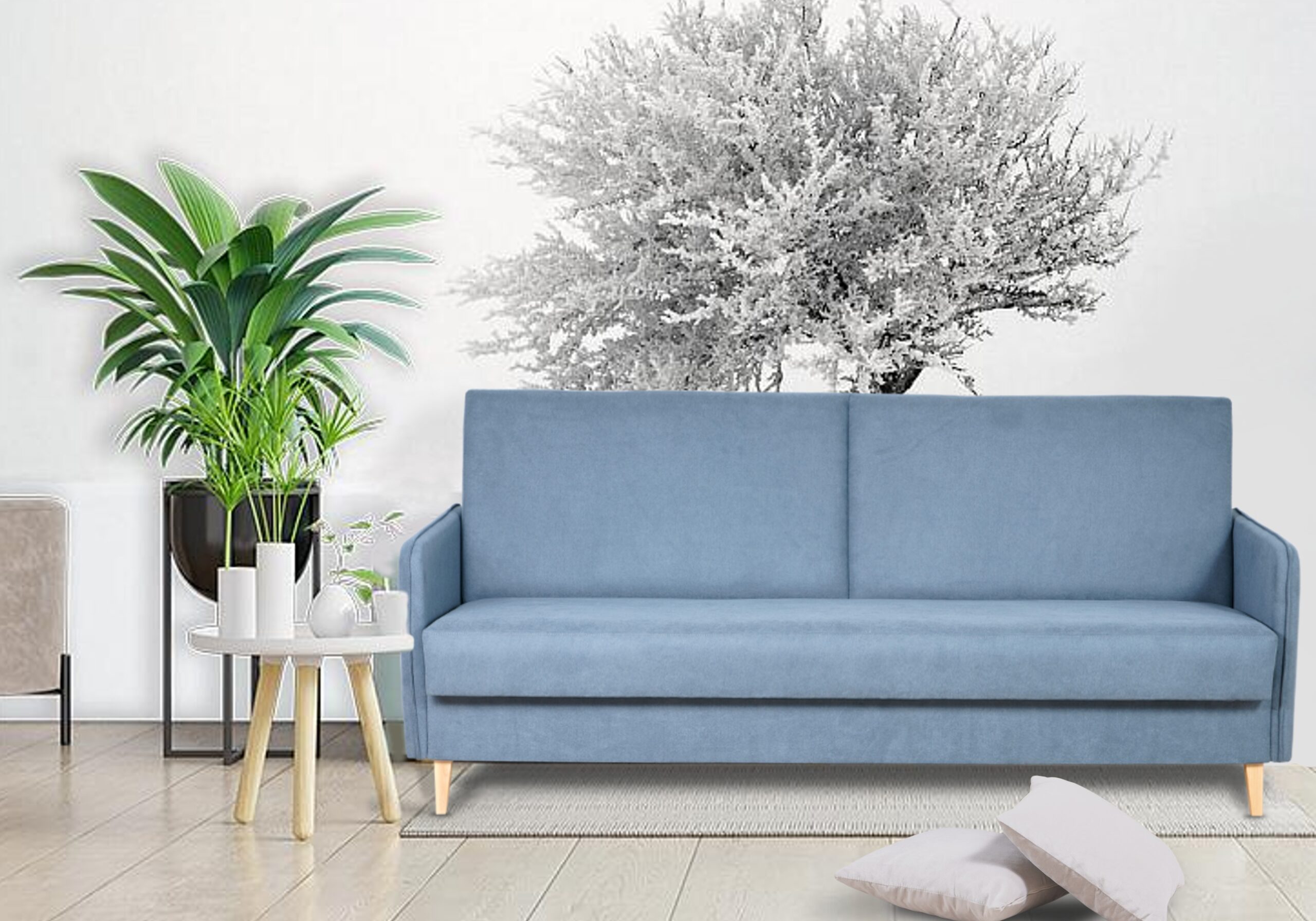 Dodatkowym atutem wersalki jest prześwit pod meblem, który został przystosowany do pracy wszystkich modeli robotów sprzątających – dzięki temu utrzymanie czystości w pomieszczeniu jest wyjątkowo proste.